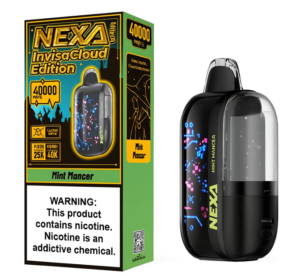 Experience the ultimate freshness with the Nexa Ultra Invisacloud Edition – Mint Mancer 40000 Puff. Designed for long-lasting performance and a smooth, icy finish, this premium disposable vape delivers pure satisfaction with every puff. Each draw releases a crisp, cooling mint flavour that refreshes your senses while maintaining consistent vapour quality thanks to Nexa’s advanced Invisacloud technology.